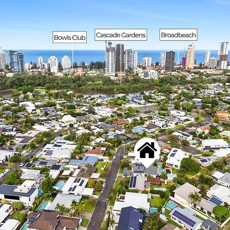 빌라는 Broadbeach Waters 지역에 있으며 타워 하우스 비즈니스센터에서 12분 이내에 있습니다.